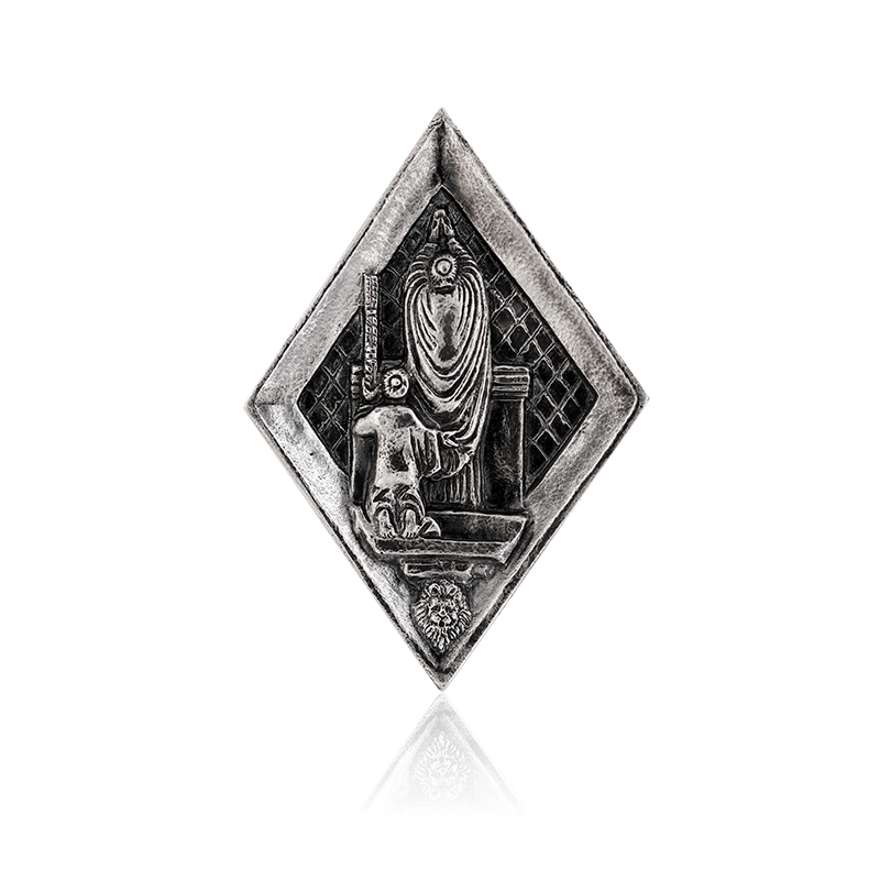 Formella realizzata, in argento, con l’antica tecnica della fusione a cera persa, cesellata ed incisa a bulino secondo l’antica tradizione orafa fiorentina. Trae ispirazione dalle formelle a losanga situate sul Campanile del Duomo di Firenze.