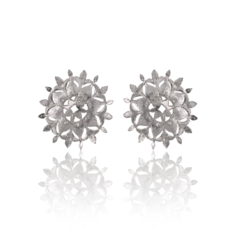 PENKO LOGO whitexweb Silver earrings inspired by one of the white Carrara and green Prato marble inlays created by Leon Battista Alberti for the facade of the Florentine church of Santa Maria Novella.
