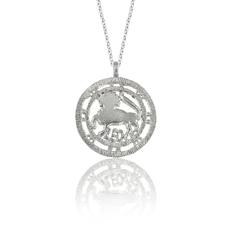 Silver pendant inspired by the signs of the zodiac inside the wheel of the Zodiac depicted on the floor of the Baptistery of Florence.