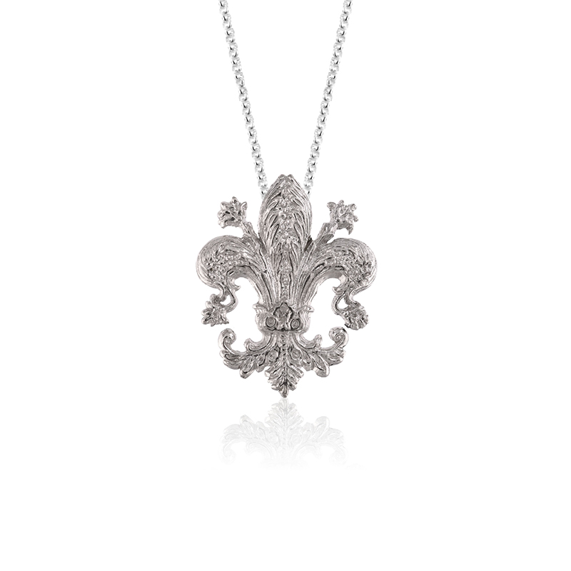 Pendente realizzato in argento, trae ispirazione dal giglio di Benetto da Maiano, situato sul portale ligneo della Cappella dei Pazzi, in Santa Croce.