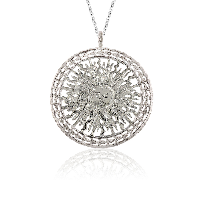 Silver pendant inspired by the Sun in white Carrara and green Prato marble made by Leon Battista Alberti for the facade of the Florentine church of Santa Maria Novella.